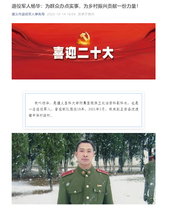 遵义市退役军人事务局报道 退役军人杨华:为群众办点实事,为乡村振兴贡献一份力量!