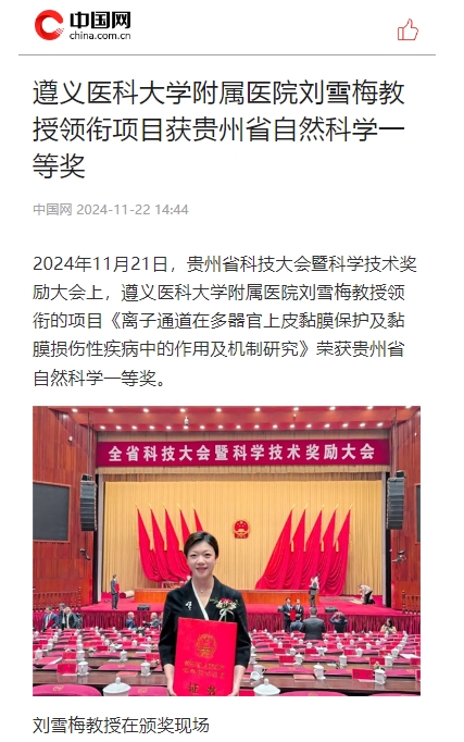 中国网报道 遵义医科大学附属医院刘雪梅教授领衔项目获贵州省自然科学一等奖