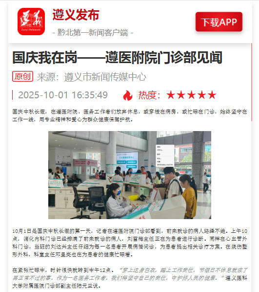 遵义发布报道 国庆我在岗——遵医附院门诊部见闻