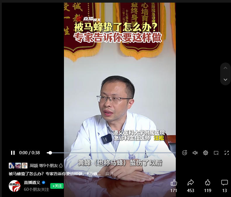 直播遵义视频号报道 被马蜂蜇了怎么办?专家告诉你要这样做