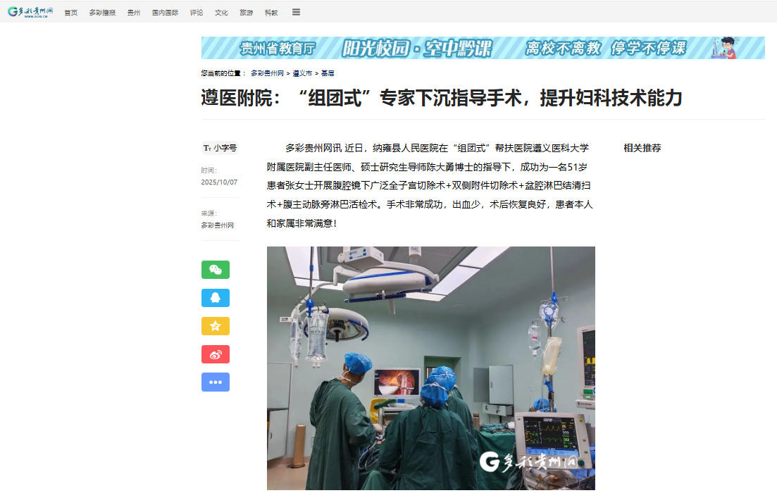 多彩贵州网报道 遵医附院:“组团式”专家下沉指导手术,提升妇科技术能力