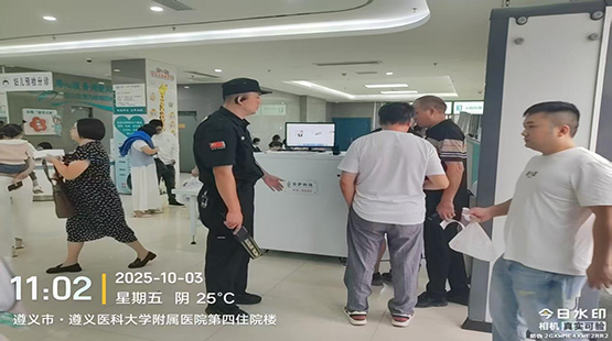 国庆佳节期间,为保障医院医疗秩序平稳有序、营造安全和谐的就医环境,遵医附院保卫处值班值守工作人员恪尽职守,以“时时放心不下”的责任感,坚守岗位一线,用实际行动践行“国庆我在岗,安全不放假”的庄严承诺,全力守护医患安全。