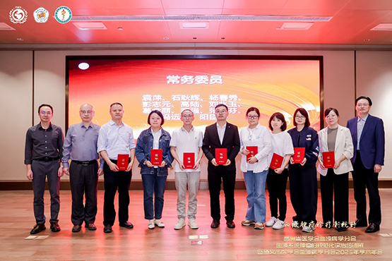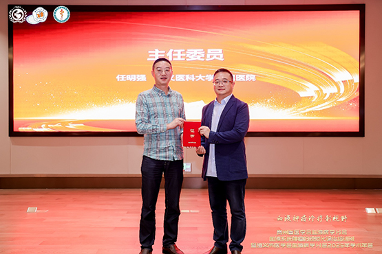 遵义市医学会副会长兼秘书长韩建华(左一)为遵义市医学会血液学分会第三届主任委员任明强(右一)颁发证书