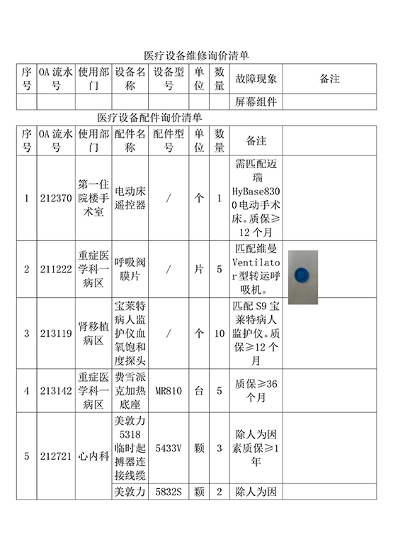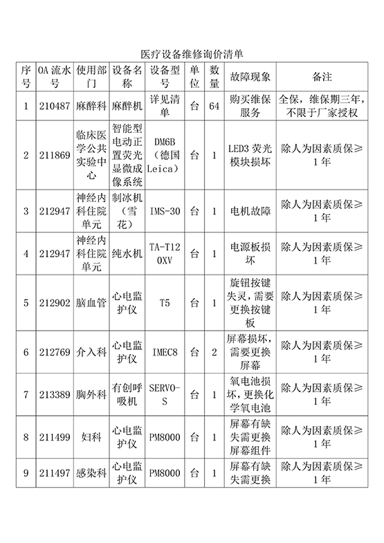 遵义医科大学附属医院就医疗设备维修进行院内线上询价,欢迎符合资格条件的供应商参加线上报价。有关事项如下: