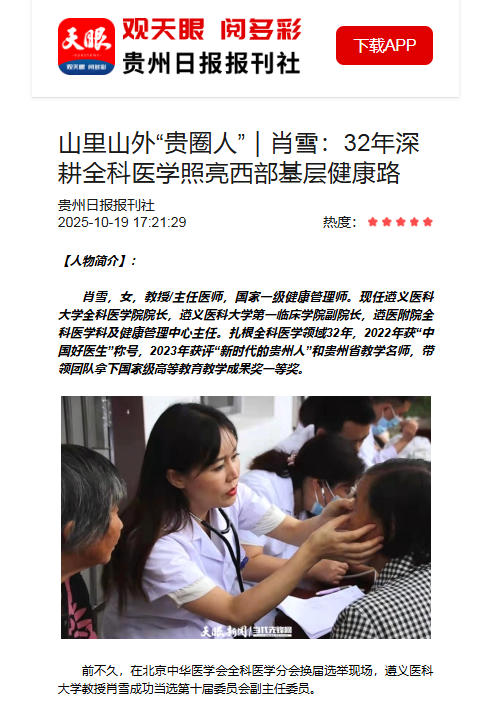 天眼新闻报道 山里山外“贵圈人”|肖雪:32年深耕全科医学照亮西部基层健康路