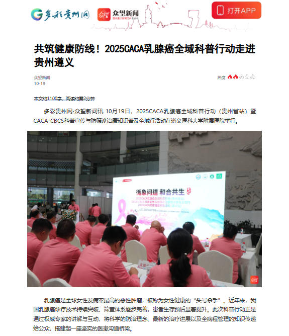 多彩贵州网·众望新闻报道 共筑健康防线!2025CACA乳腺癌全域科普行动走进贵州遵义