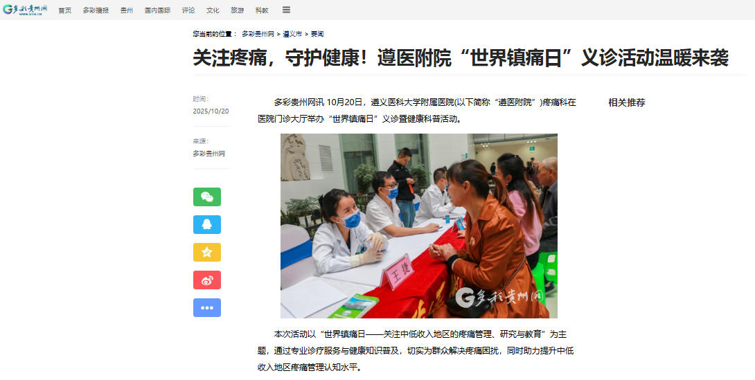 多彩贵州网报道 关注疼痛,守护健康!遵医附院“世界镇痛日”义诊活动温暖来袭