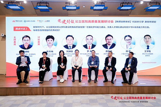 下午,遵义医科大学附属医院副院长王东红主持了深圳市人民医院院长耿庆山“未来 AI 医院全景探讨——AI 智能体重塑未来医院新范式”的分享,以及中国中医科学院西苑医院医务处副处长邵魁卿“‘西苑红’点亮研究型医院建设”等环节。在圆桌对话中,六盘水市人民医院党委书记陈冬梅、襄阳市中心医院副院长刘渊泉、贵州省遵义市播州区中医院党委书记罗勇、湘潭市中心医院副院长唐新桥、六盘水市妇幼保健院党委书记田艳等专家,就数智时代下公立医院如何以学科建设助推高质量发展、完善人才梯队建设和提升专科服务能力等方面各抒己见,为公立医院学科建设提供了诸多新思路。