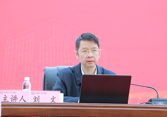 刘文书记以《凝心聚力谱华章 奋楫扬帆再启航》为题,围绕“认真学习、深学细悟,准确把握党代会精神内涵;统一思想、凝心聚力,抓好党代会精神贯彻落实;聚焦关键、攻坚克难,着力在重点工作上求突破”三个方面进行宣讲。他首先介绍大会召开的基本情况和重要意义,并系统回顾了第一次党代会以来学校在党的建设、立德树人、深化教改、学科建设、师资队伍、科学研究、对外交流、社会服务、文化建设、内部治理十个重点领域的工作推进情况以及取得的丰硕成果,总结凝练发展经验,指出存在的差距和突出问题。宣讲中,他重点围绕如何在“一体两翼多中心”战略格局下落实“一二三五八”总体思路,学校未来五年的工作思路和奋斗目标,以及全面实施提质增效“八大工程”的具体要求和工作路径进行详细阐释。