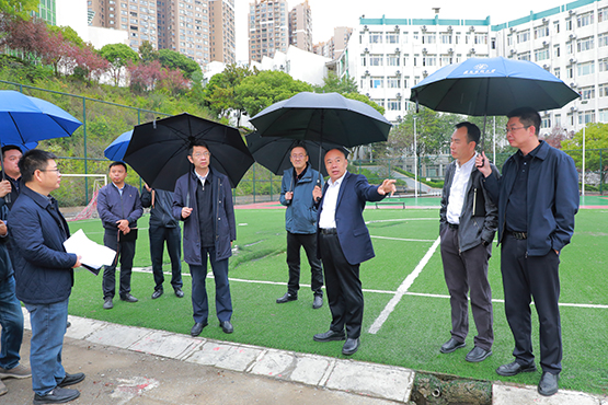 调研中,刘文一行前往学校后山学生宿舍区,实地考察学生宿舍建设情况,在听取后勤处处长杨邦辉的相关工作汇报后,他详细询问了学生住宿床位数、食堂每日订餐量等情况。刘文指出,学生宿舍建设要结合现有学生数量,科学规划床位数,因地制宜,充分利用现有场地资源,设计并建设满足学生日常生活的住宿场所。严格规范施工时间,避免噪音干扰学生休息,并特别强调施工车辆进出安全及消防安全的重要性,要求相关部门立即研究制定消防演练计划,规划合理的消防路线,确保校园安全。