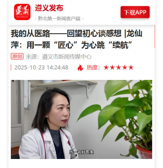 遵义发布报道 我的从医路——回望初心谈感想 |龙仙萍:用一颗“匠心”为心跳“续航”