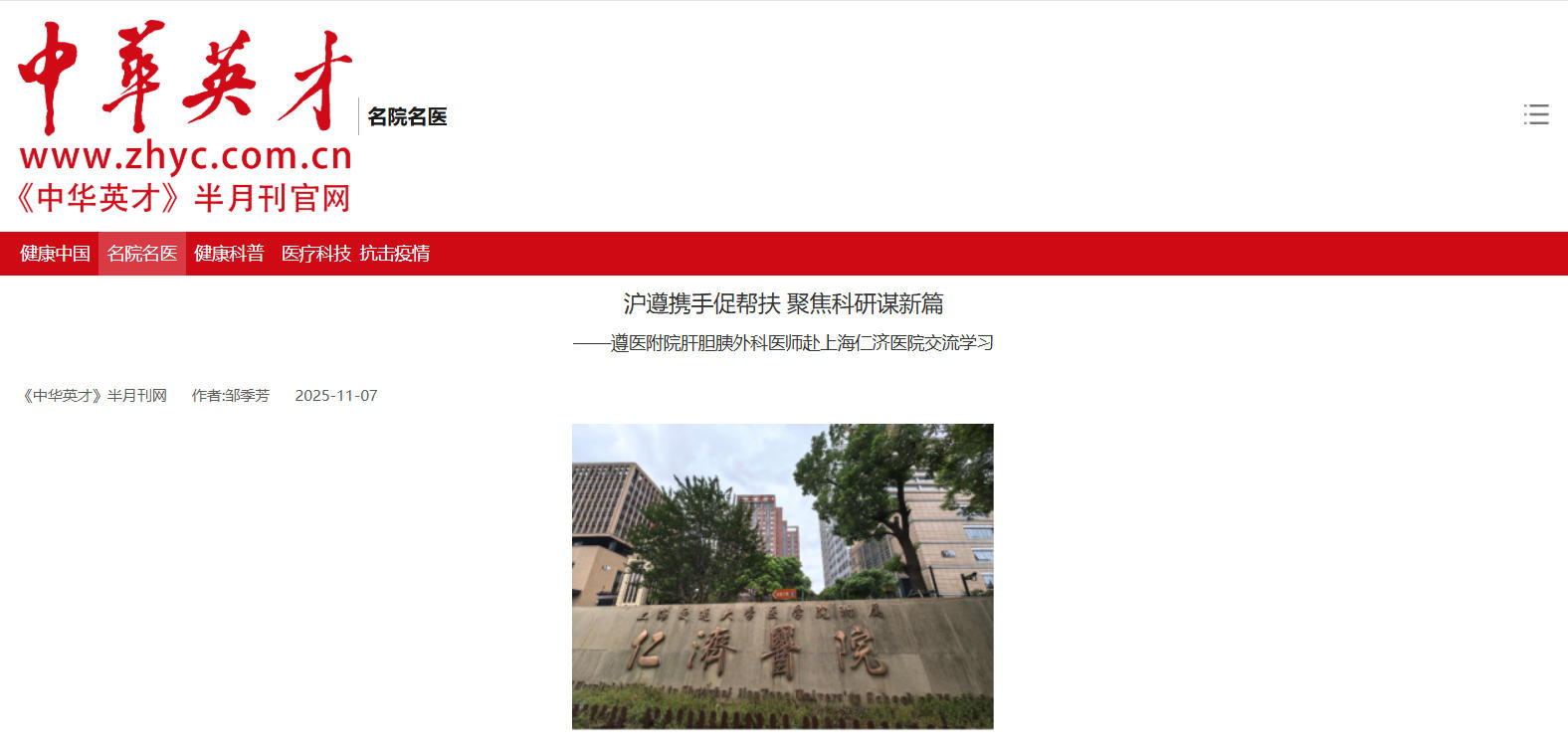 《中华英才》半月刊网报道 沪遵携手促帮扶 聚焦科研谋新篇——遵医附院肝胆胰外科医师赴上海仁济医院交流学习