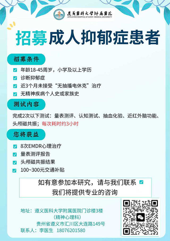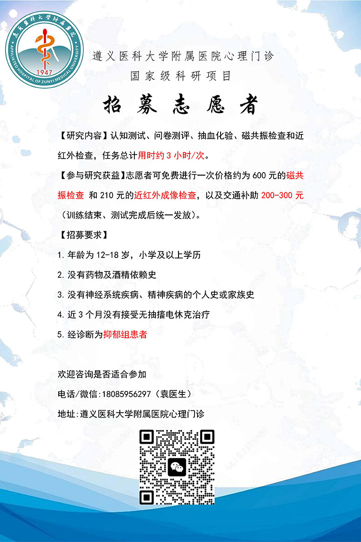 遵义医科大学附属医院心理门诊国家级科研项目招募志愿者公告