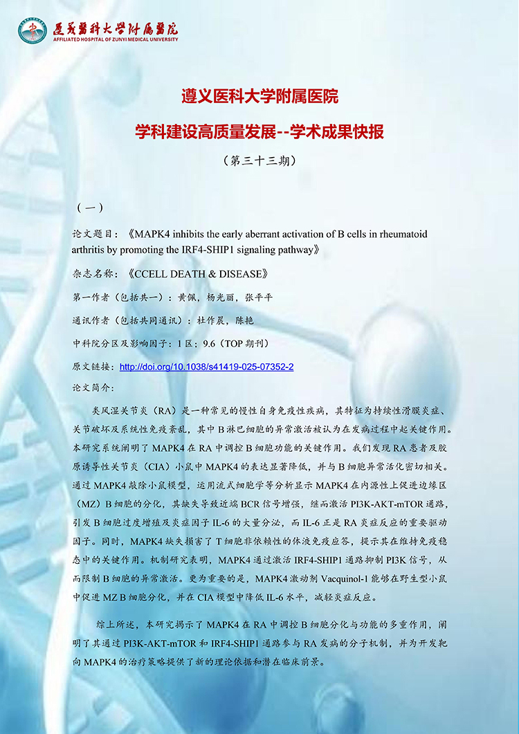 遵义医科大学附属医院 学科建设高质量发展--学术成果快报 (第三十三期)