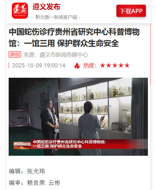 遵义发布报道 中国蛇伤诊疗贵州省研究中心科普博物馆:一馆三用 保护群众生命安全