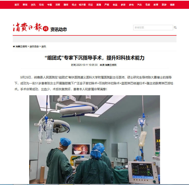消费日报报道 “组团式”专家下沉指导手术,提升妇科技术能力