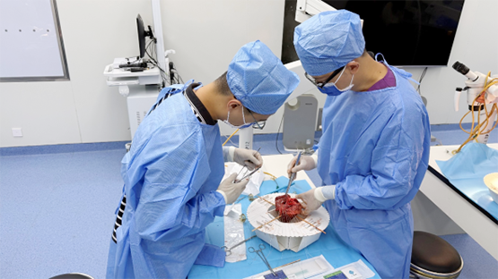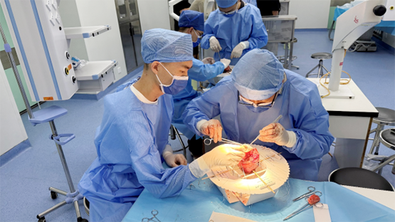 选择猪心进行练习是因为猪的心脏在大小、结构以及功能上与人类心脏非常相似,是理想的手术模拟材料。培训中,医生们面对的不再是教科书上的平面图,而是触手可及、结构分明的真实心脏组织。每一次下刀,每一次缝合,都是对眼力、手感和心理素质的极致考验。在这里,他们可以不断地尝试、复盘、再尝试,直到将每一个步骤都烂熟于心,形成稳固的“肌肉记忆”。