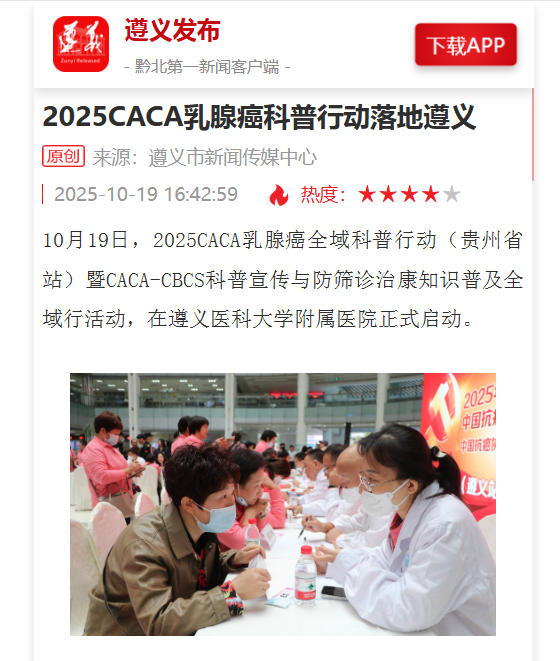 遵义发布报道 2025CACA乳腺癌科普行动落地遵义