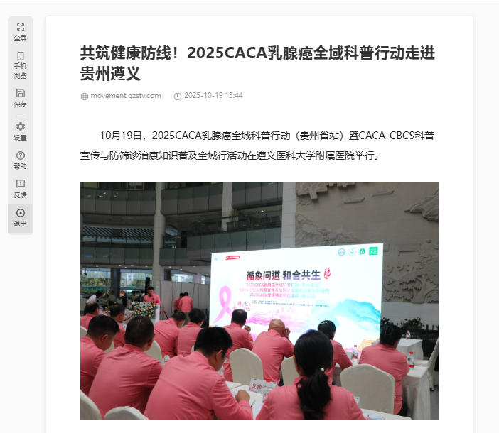 动静新闻报道 共筑健康防线!2025CACA乳腺癌全域科普行动走进贵州遵义