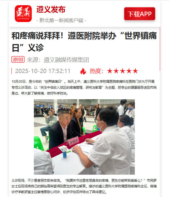遵义发布报道 和疼痛说拜拜!遵医附院举办“世界镇痛日”义诊