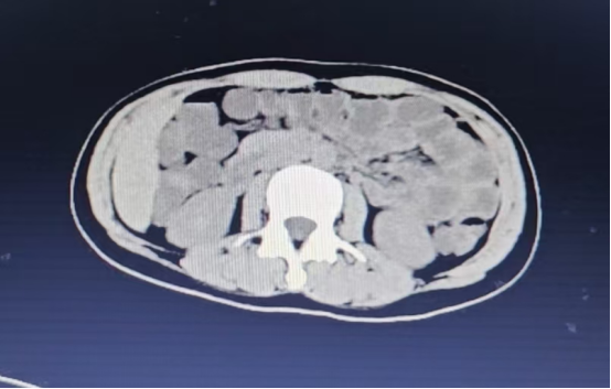 患者为26岁女性,因家庭矛盾口服草铵膦250ml,随即出现恶心、呕吐等急性中毒症状。患者呕吐物为胃内容物,症状逐渐加重,且意识逐渐模糊。在当地医院接受初步治疗,由于病情危重,被紧急转至遵医附院急诊科。入院时,患者神志呈嗜睡状。腹部CT检查显示,患者腹腔内肠管出现多发性积气和积液,液气平面明显。考虑到患者病情危急,急诊医护团队立即启动紧急救治措施,进行毒物清除和支持性治疗。