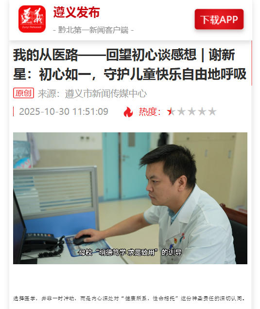 遵义发布报道 我的从医路——回望初心谈感想|谢新星:初心如一,守护儿童快乐自由地呼吸