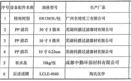 维保要求:维保期限内水质须达到国家及使用科室的要求与规范,每年巡检不低于8次,故障上门响应时间不超过1小时,更换耗材要求如下: