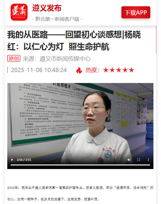 遵义发布报道 我的从医路——回望初心谈感想|杨晓红:以仁心为灯 照生命护航