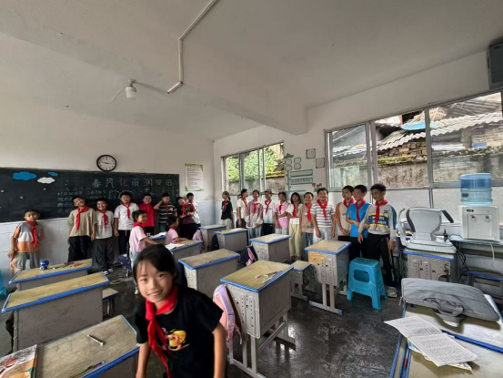 发放现场暖意融融,孩子们戴上新眼镜后,兴奋地指着黑板上的小字说:“以前坐在后排总看不清板书,现在每个字都清清楚楚了!”孩子们捧着崭新的眼镜,脸上洋溢着喜悦与感激,纷纷向工作人员鞠躬致谢。遵义医科大学侨联副主席刘太祥博士表示:“乡村学生因就医不便,视力问题常被忽视,我们连续4年深度参与该项目,就是要把最专业的眼视光服务送到山区,让每个孩子都能清晰看世界。”