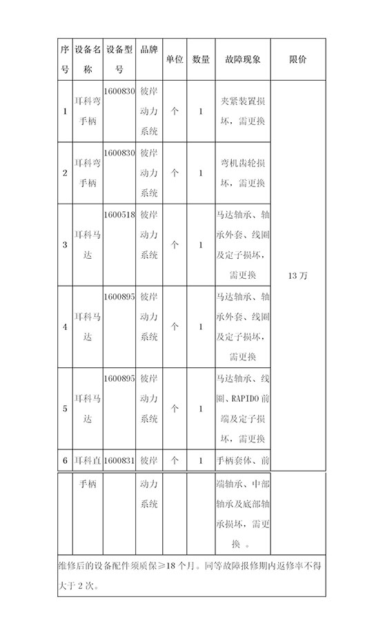 ★4、因为该附件属于精密手术使用,为保证使用安全,投标公司须提供原厂售后授权书。维修完毕后提供原厂维修工单。