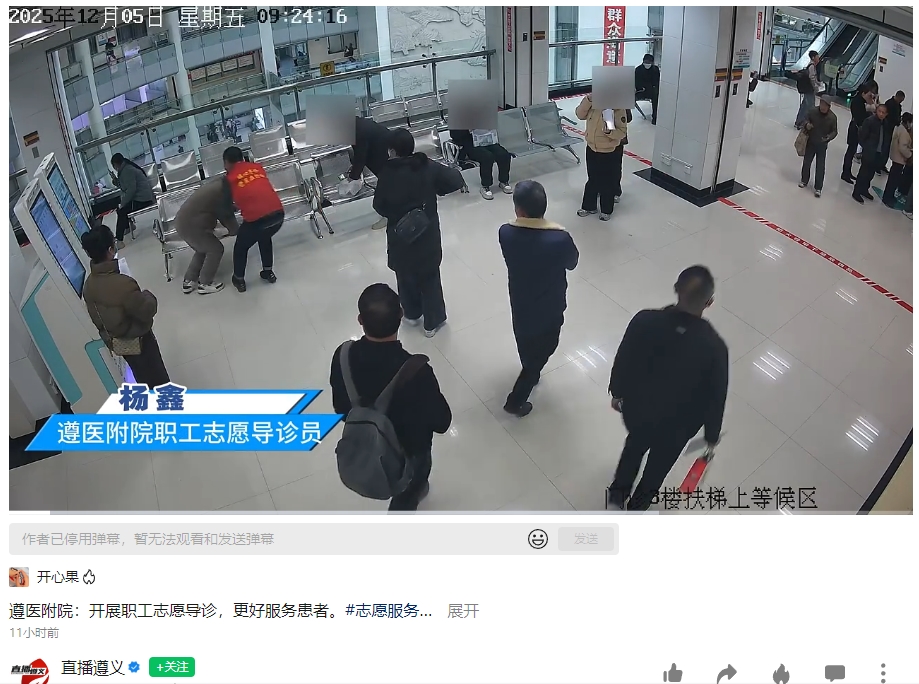 直播遵义视频号报道 遵医附院:开展职工志愿导诊,更好服务患者