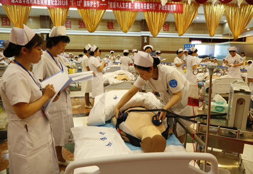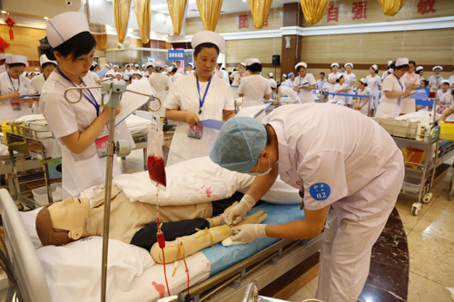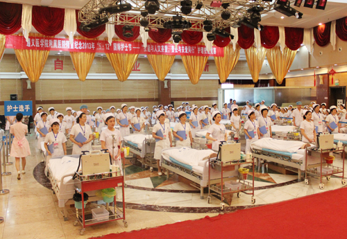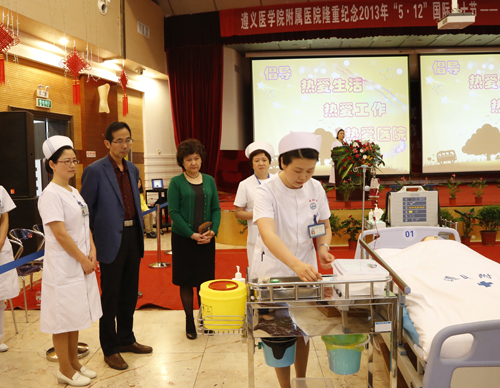 为进一步推进优质护理服务工作,更好的提升全院护士技能操作水平,值“5.12”国际护士节到来之际,我院举办了以“技能与人文并重,责任与关爱同行”为主题的护理技能竞赛活动。2013年5月10日下午,在我院内科大楼四楼多功能厅隆重举行了纪念2013年“5.12”国际护士节、 护理技能竞赛及颁奖活动,分管护理的舒涛副院长、护理部主任江智霞、护理学院党委书记张莉、工会副主席李齐鸣等领导及一线工作的护士参加了活动。