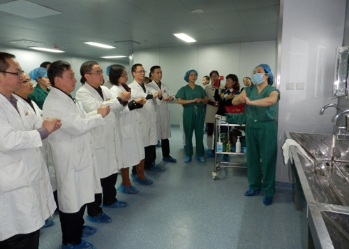 为积极推进我院医联体试点工作,2013年11月20日,由我院护理部组织的培训专家组赴遵义县人民医院开展了医务人员职业防护、外科规范洗手相关内容的知识讲座以及现场操作演示、现场督导等系列活动。